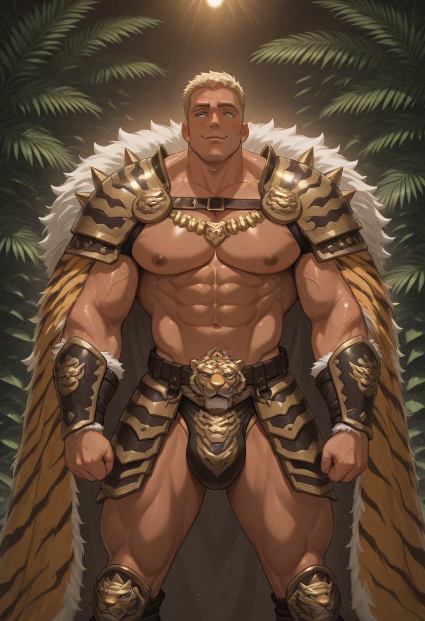 LORAは、ジャングルの戦士や虎にインスパイアされた野生的な鎧を着ている。