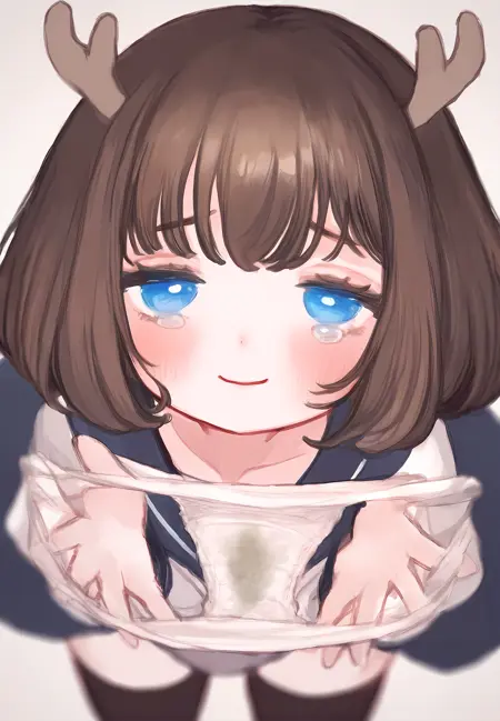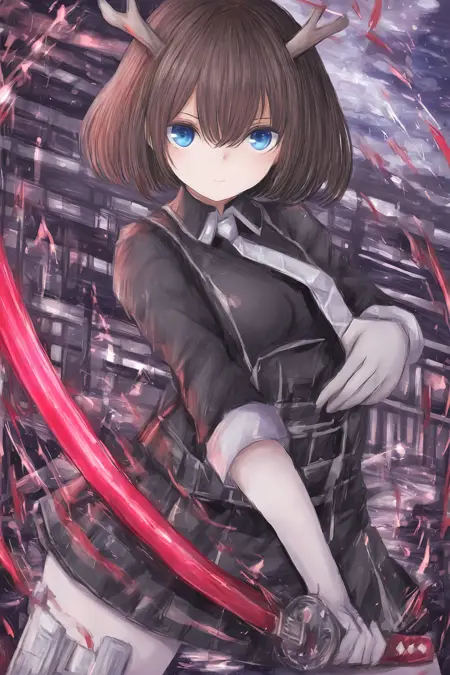 트리거 단어 kano, (녹색 뿔:1.2), 갈색 머리카락, 파란 눈,