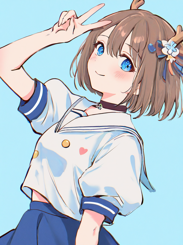 触发词kano, (antlers:1.2), brown hair, blue eyes,