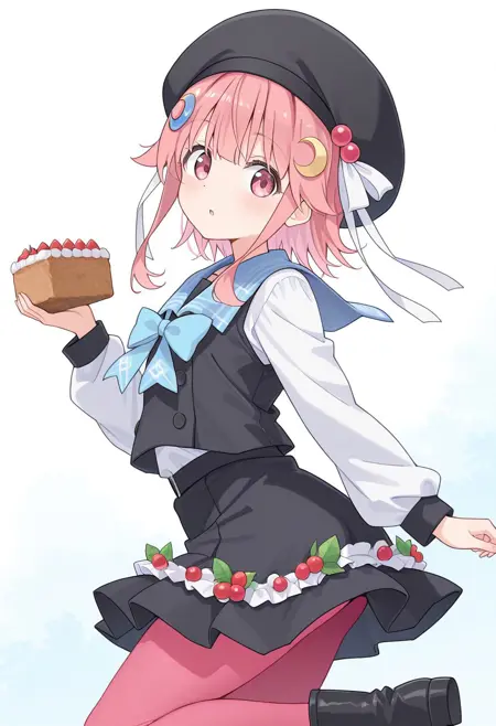 Hashino_冬季校服,红色发饰,蓝色水手领,格子水手领,粉红色连裤袜,黑色头饰,蓬裙,黑色裙子,白色花边,多彩裙子,黑色背心,蓝色胸结,白色袖子,白色丝带,靴子,