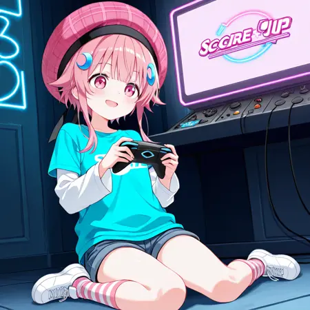 Hashino_旧校服,条纹袜,白鞋,衬衫,短袖,黑色短裤,格子头饰,(不推荐,可能浪费你的机会)