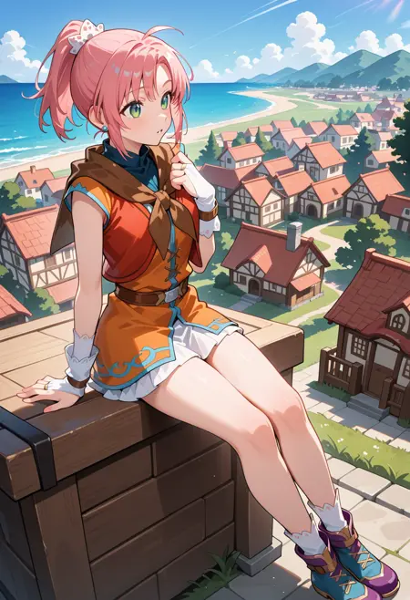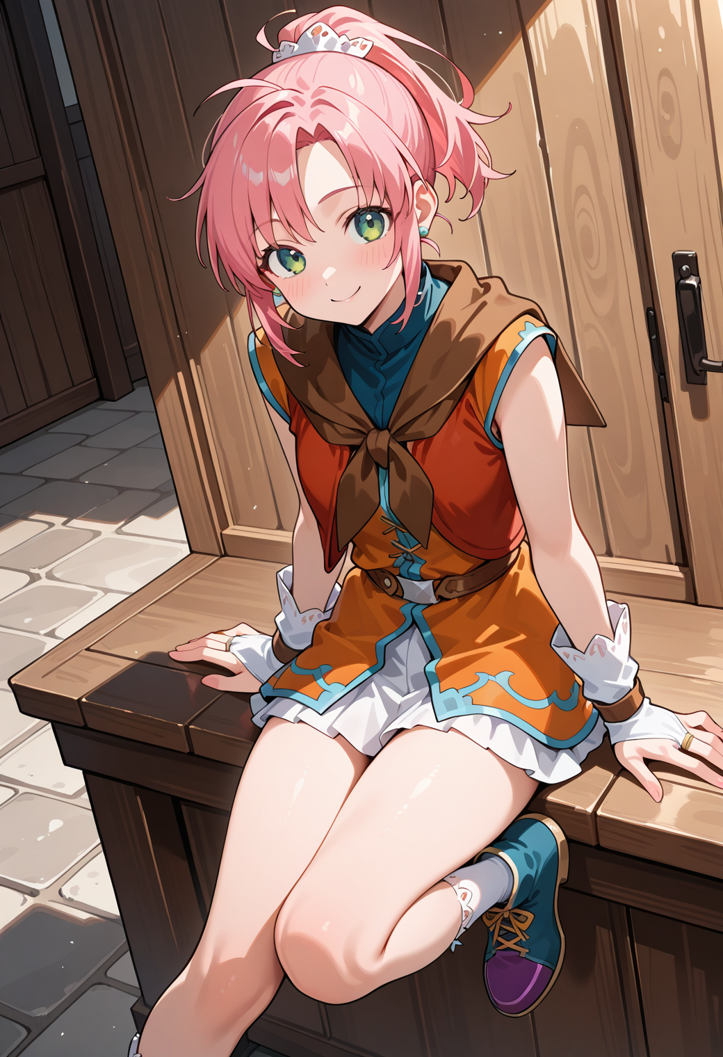 loh5_una, 粉色头发, 短发, 马尾, 绿色眼睛,