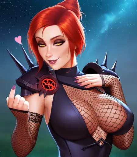红发,短发,单发髻,口红,妆容,黄眼睛
