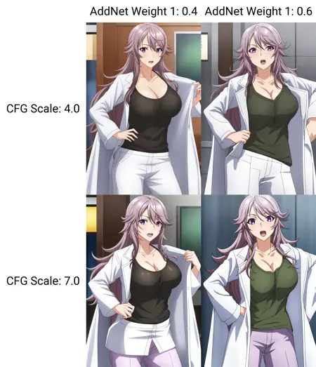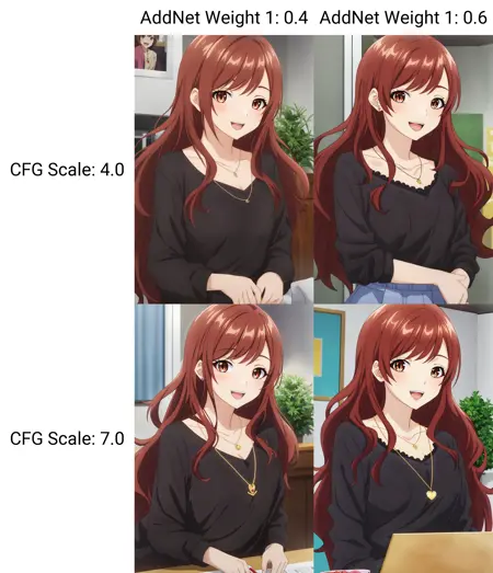 • LoRA 강도: 0.4 / 0.6