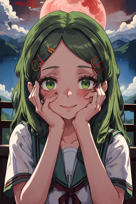 主要なプロンプトワード: 緑の目、ヘアクリップ