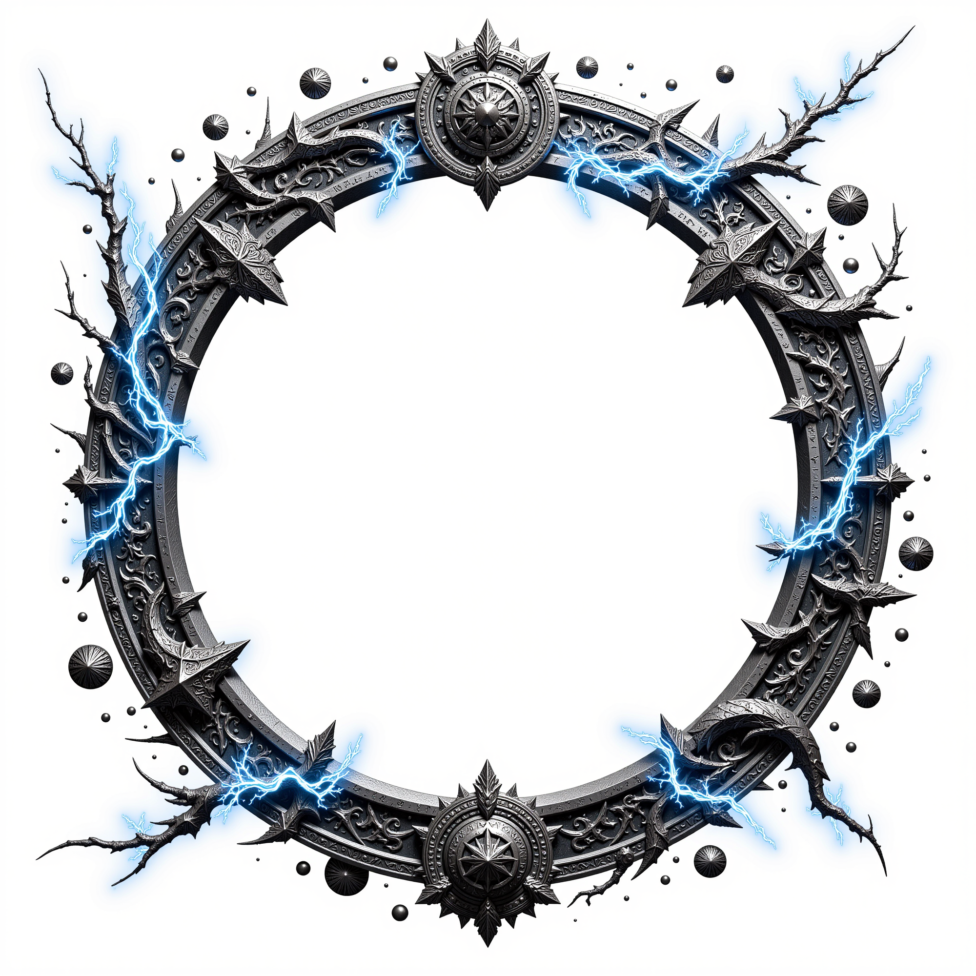 "a high detailed circular tokenframe on a white background with an empty white centre. Design of " You can change the shape from circular and I've tried square and hexagonal so far and both worked.