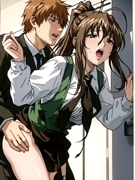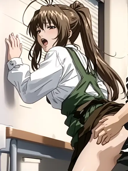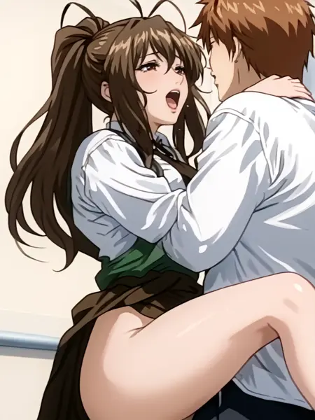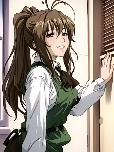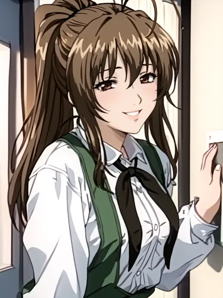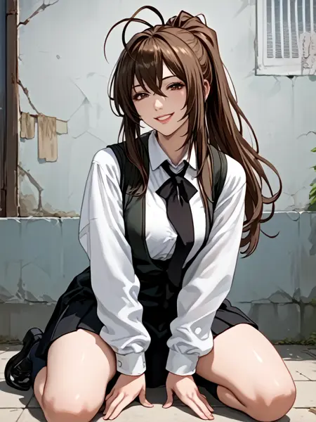 1girl,brown hair,antenna hair,long hair,ponytail,brown eyes,school_uniform,