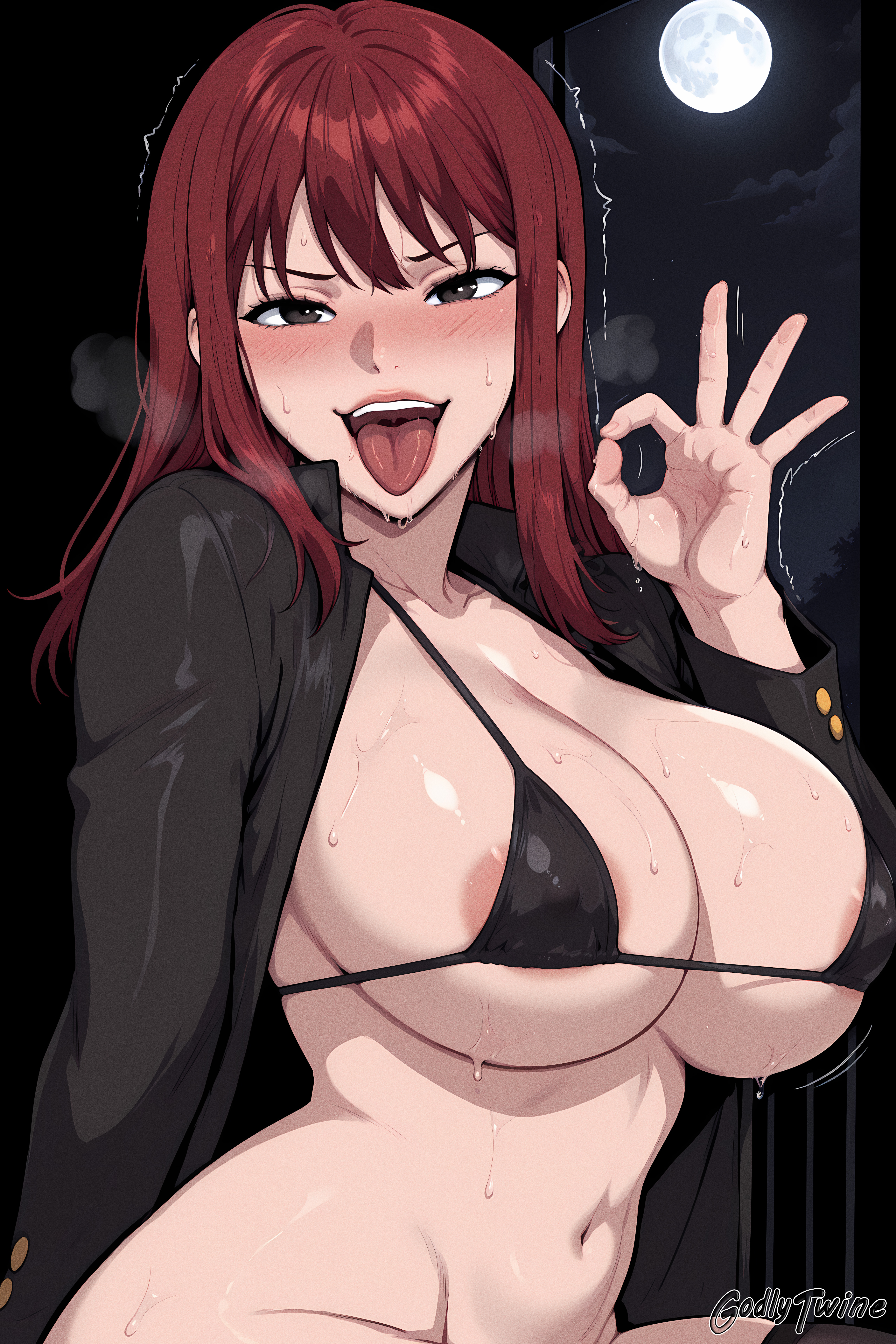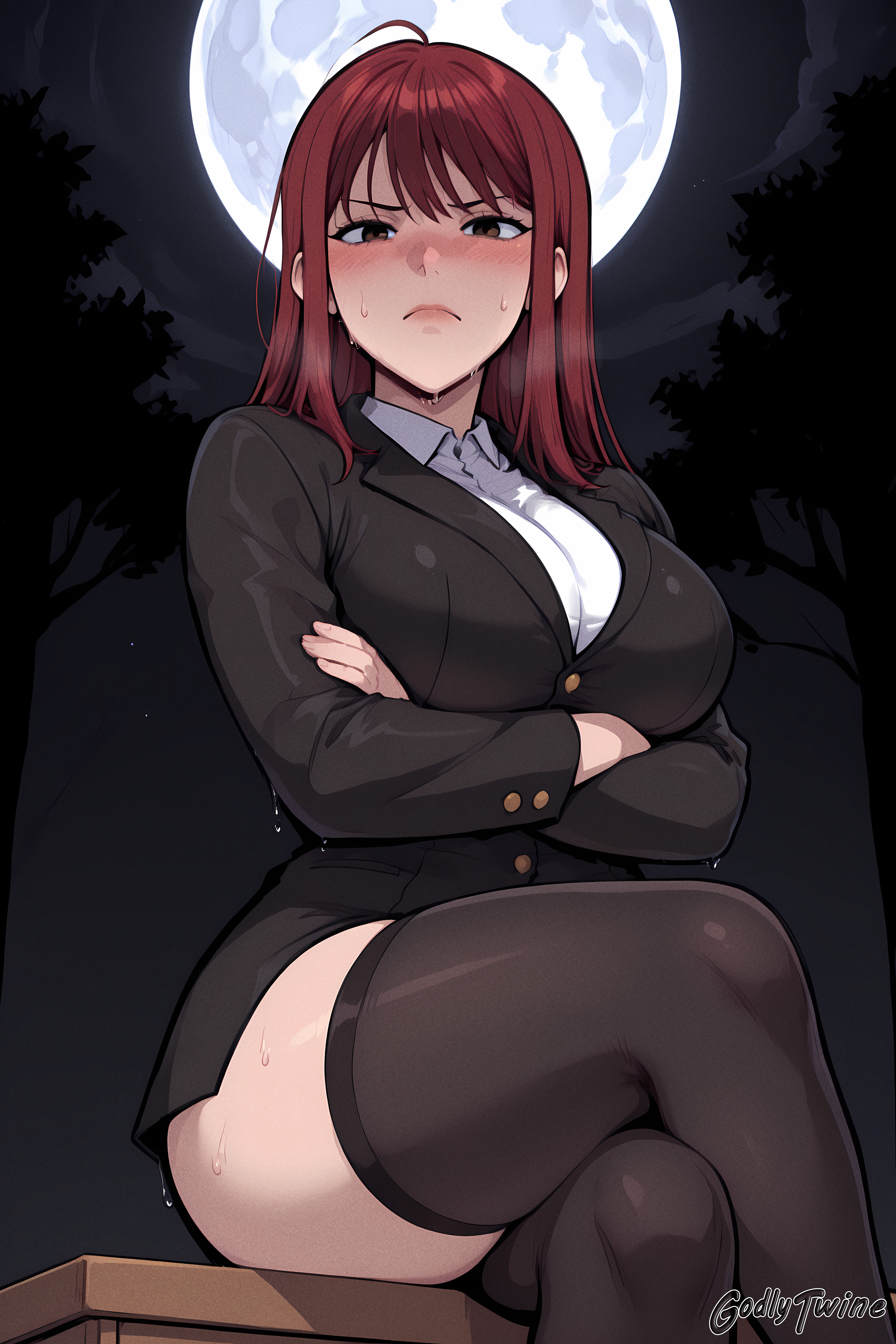 Hanlim Lim,black eyes,brown eyes,red hair,long hair,brown hair,black jacket,white shirt,collared shirt,long sleeves,black pants