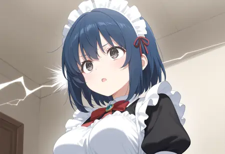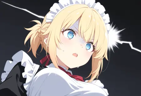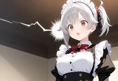 衝撃的な出来事や思いつきに対して電流が駆け抜けるようなエフェクトを出すLoRAです。