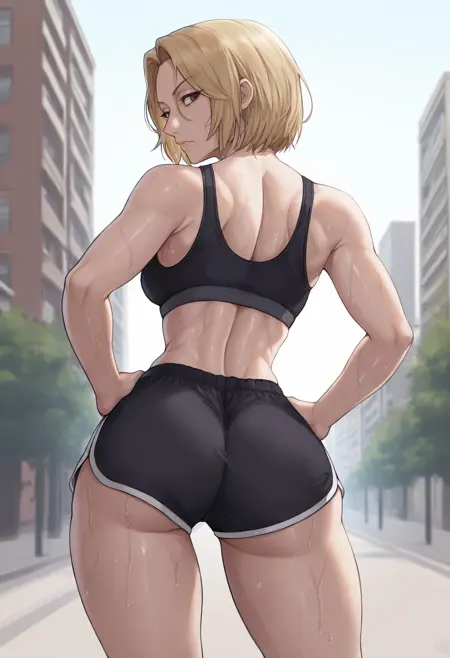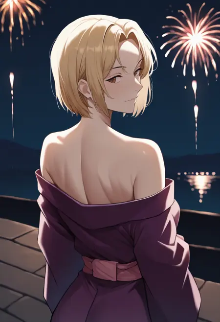 Trigger + Appearance: pakun0da, short hair, blonde hair, parted bangs, brown eyes
