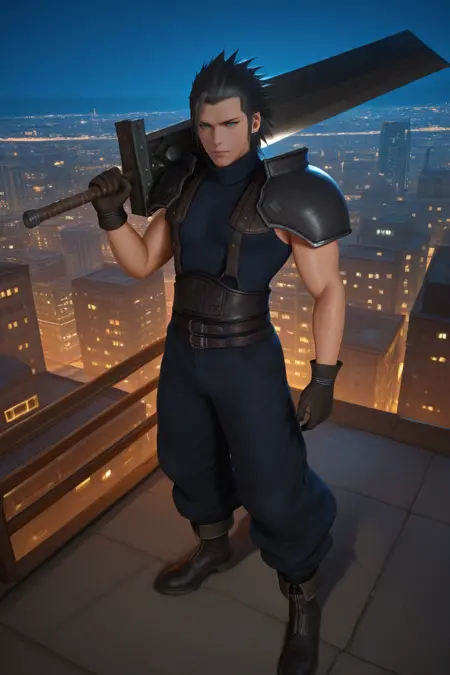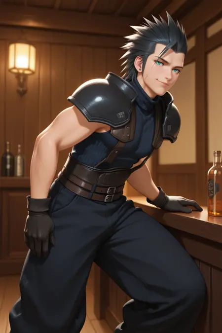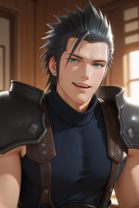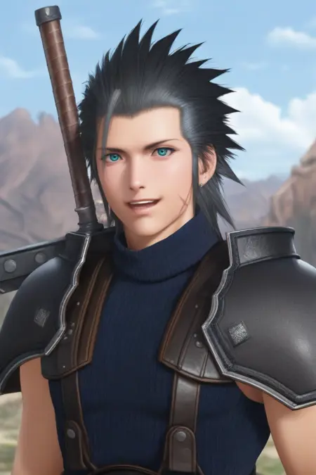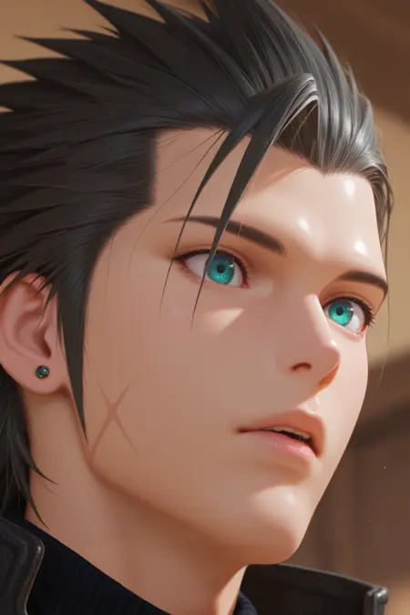 zack fair,black hair,aqua eyes,short hair,hair slicked back,spiky hair