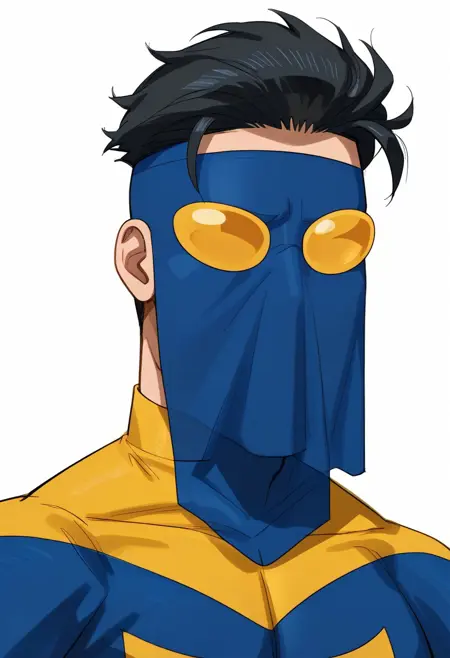 Mark Variant, Invincible Variant, black hair, [Insert variant name], [bodysuit color], [mask color], [gloves color], [boot color], [white or black lens], [cape or no cape]