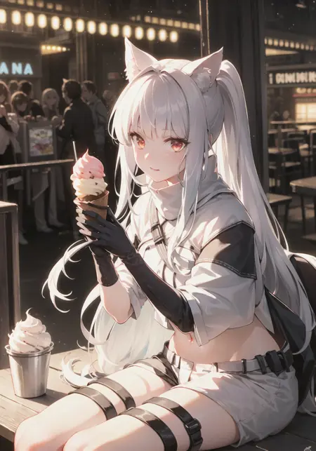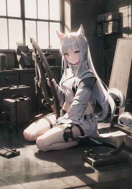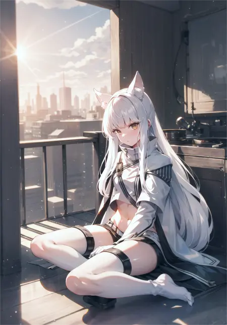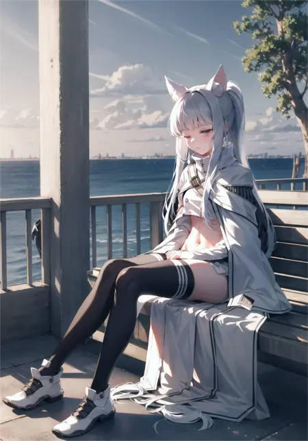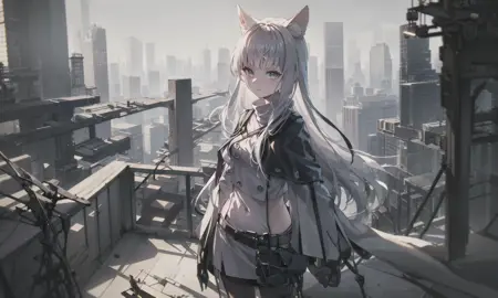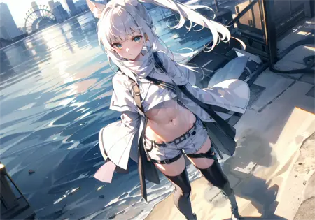 추천 프롬프트: 얇은 몸매, 복부 근육, 은색 머리카락, 긴 머리카락, 동물 귀, (볼드한), 작은 가슴
