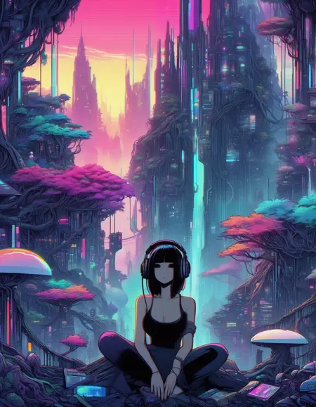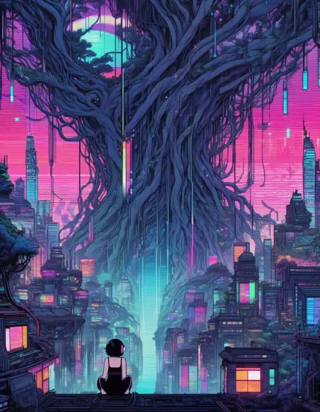 故障艺术,[复古动漫风格,精细线描,平涂色彩],