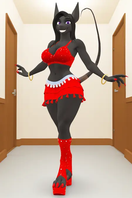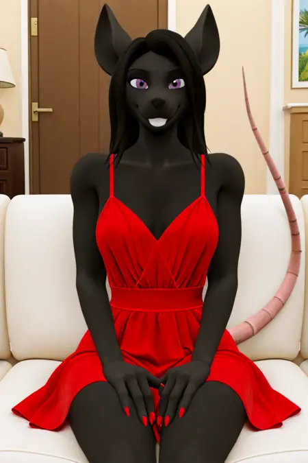标签: s4r4h,人兽,雌性 furry,黑色毛发,黑色头发,老鼠耳朵,老鼠尾巴,爪子,紫色眼睛,
