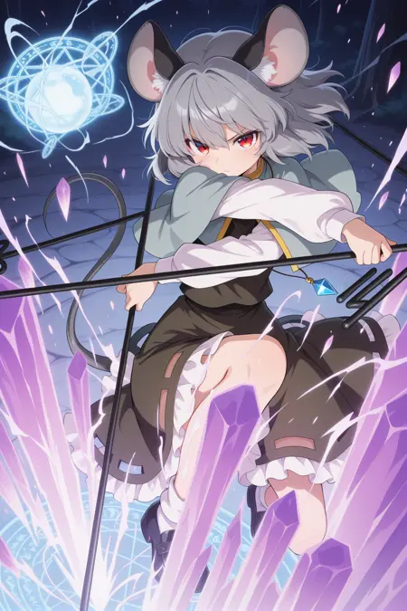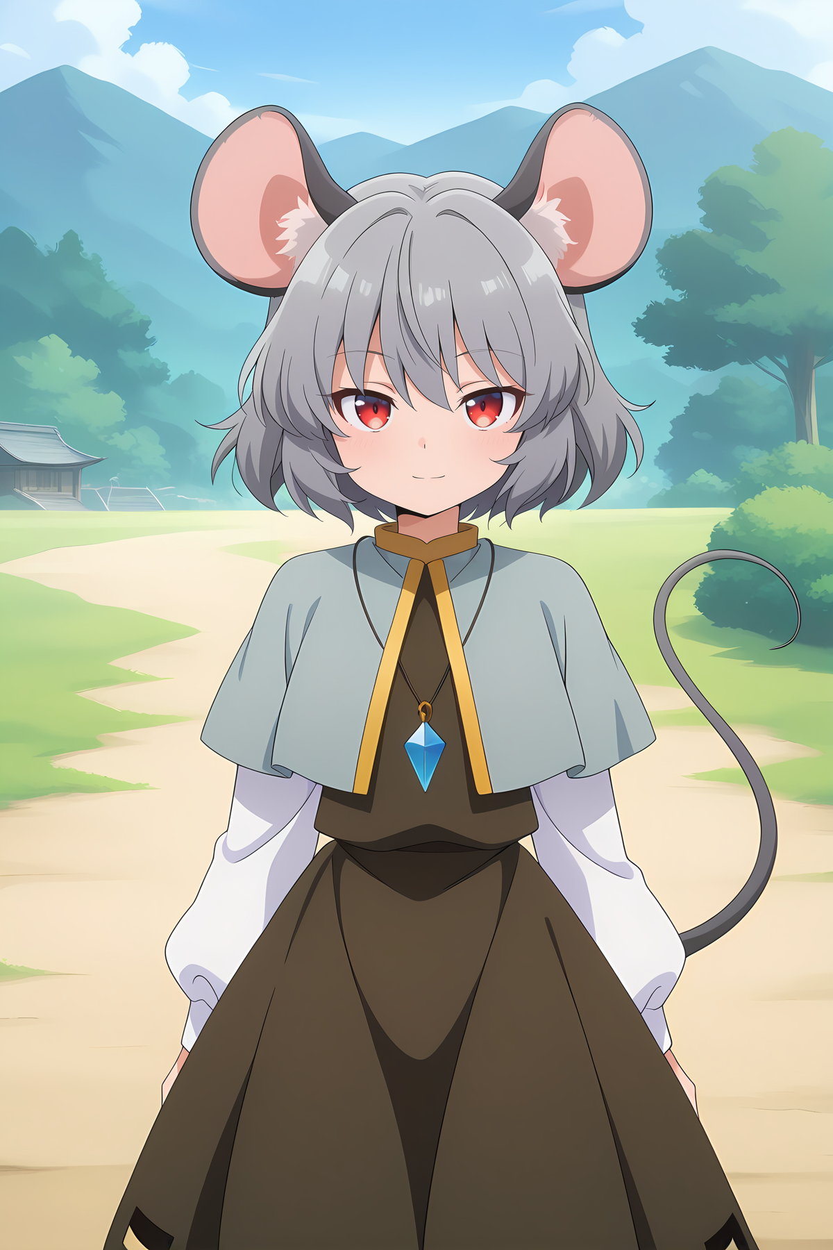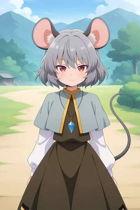 nazrin, 1girl, solo, red eyes, grey hair, short hair, mouse ears, mouse tail,