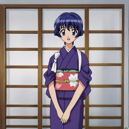 触发词:Aoi,和服,紫色和服,1girl,蓝发,蓝眼,短发,腰带,系带,长袖, cowboy shot