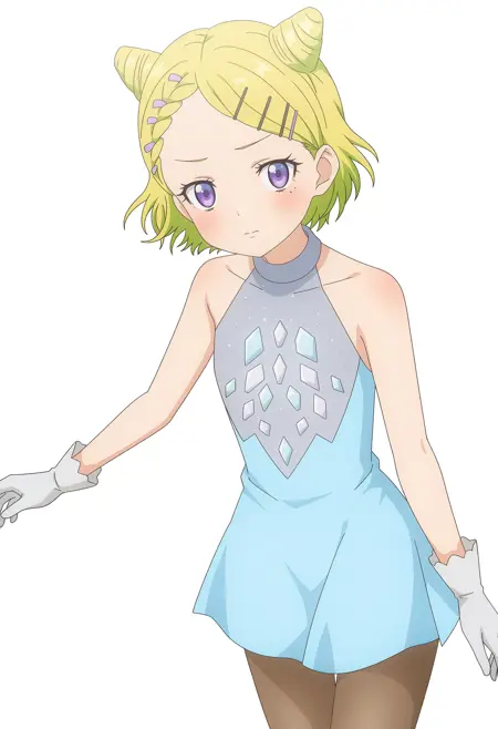 KUROSAWA Miihi,紫色眼睛,锥形发髻,金发,编织刘海,发夹,发饰,短发,