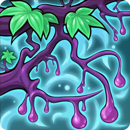 例:gmic icon _/ (Skill icon /), Many purple vines with green leaves spreading into the sky, dripping purple liquid