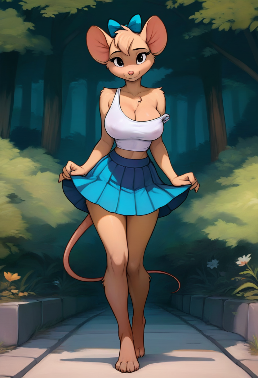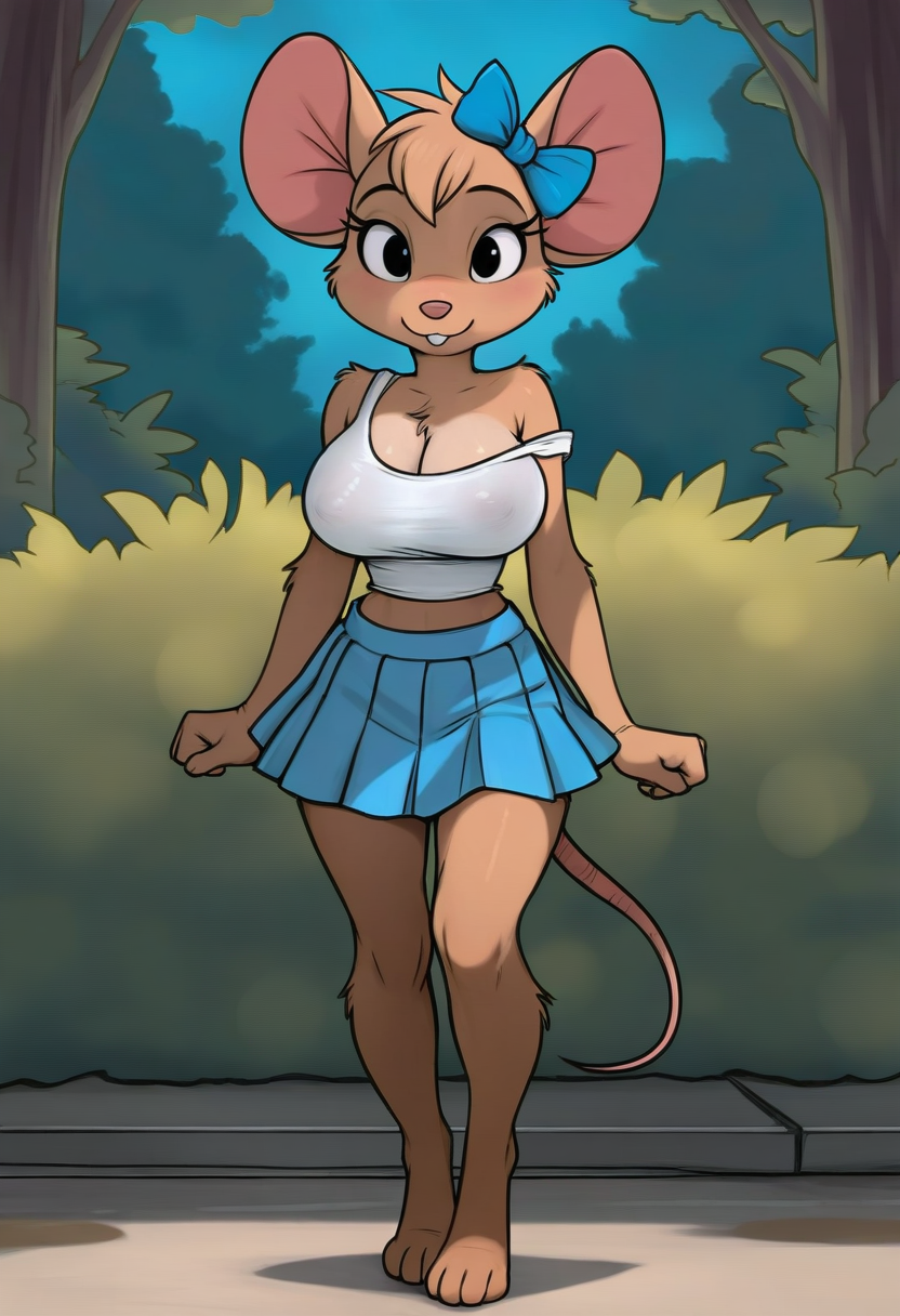 • Olivia_F, furry female, body fur, brown fur, animal nose, mouse ears, animal ears, hair ribbon, short hair, brown hair, blonde hair,