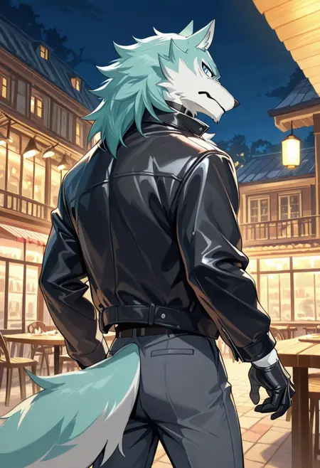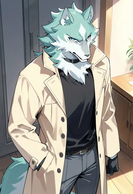 Shirou Ogami, 1boy, mature male, male, athletic build, anthro, wolf, animal ears, white and teal fur, ice blue eyes