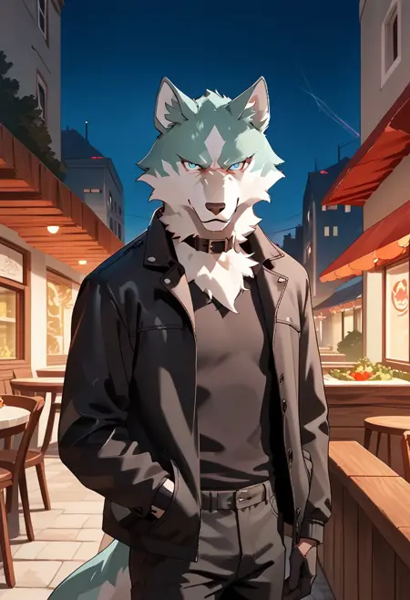 Shirou Ogami, 1boy, mature male, male, athletic build, anthro, wolf, animal ears, white and teal fur, ice blue eyes