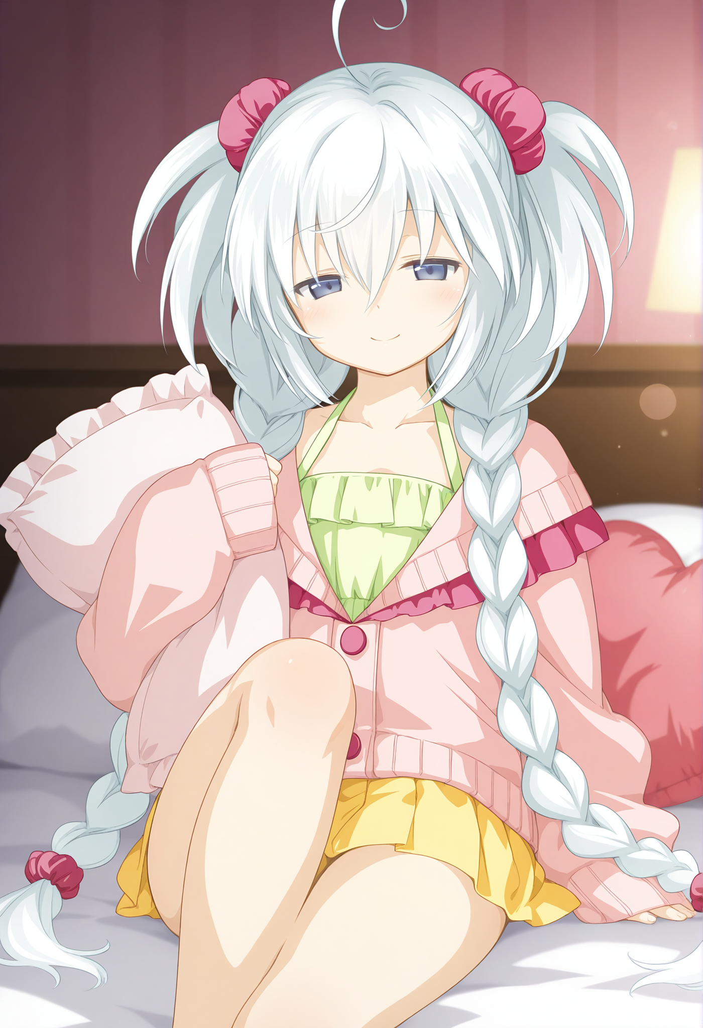 Mashiro_Regular_Clothes, twin braids, yellow skirt,