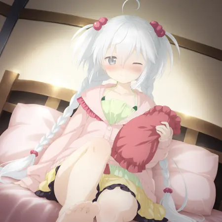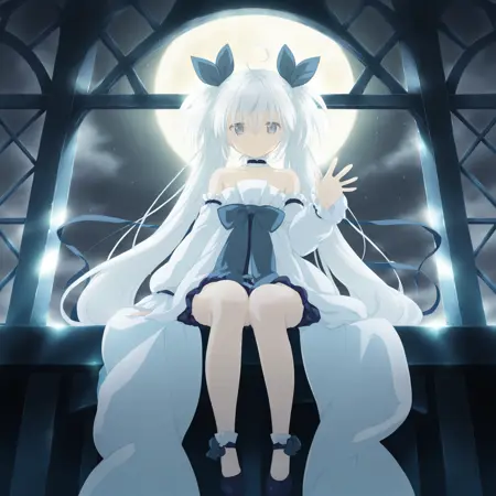 official art,Mashiro,grey eyes,ahoge,very long hair,white hair,