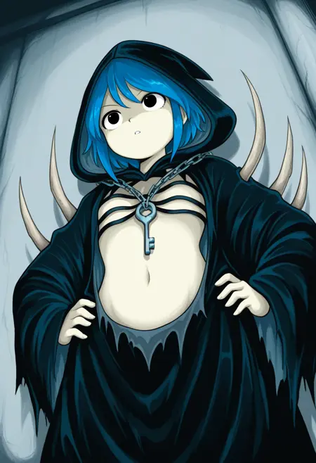 The clothes and ribs on Misetani's chest seem to have become part of the cloak and chain. When training, I only had one image of her without a cloak and with ribs (it was from the manga). Therefore, it will not be possible to display her without clothes and with ribs.