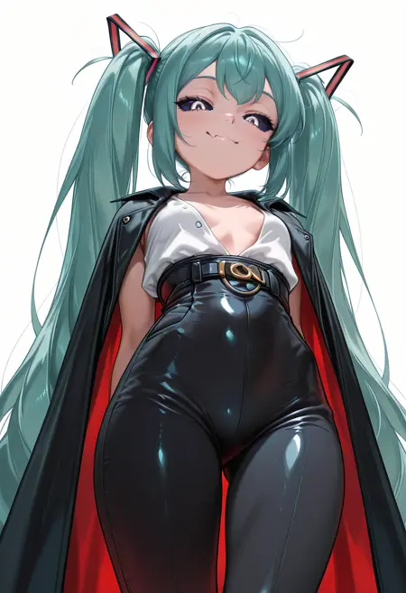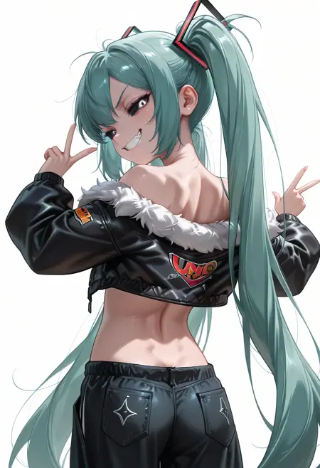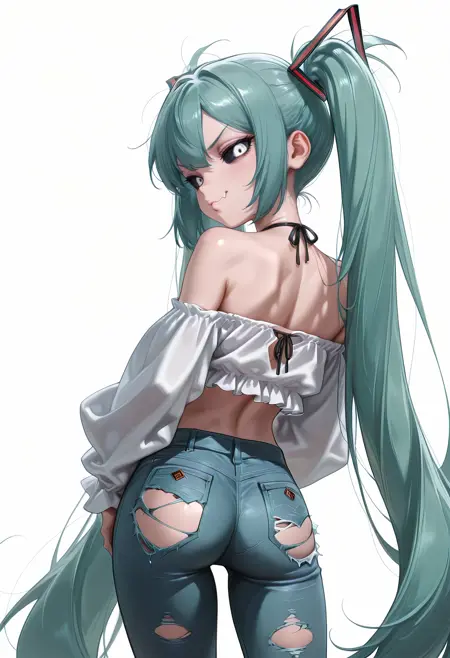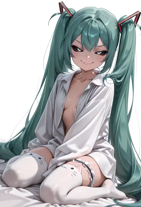NiceTry/Cnn, 1girl, twintails, very long hair, colored sclera, white eyes, fang, aqua hair, skinny, petite,