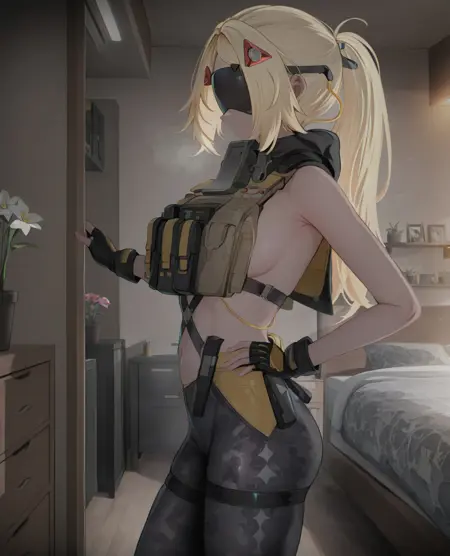 If you want to remove some element (body straps, bulletproof vest etc) add them in negative prompt with weight 1.25-.1.6
