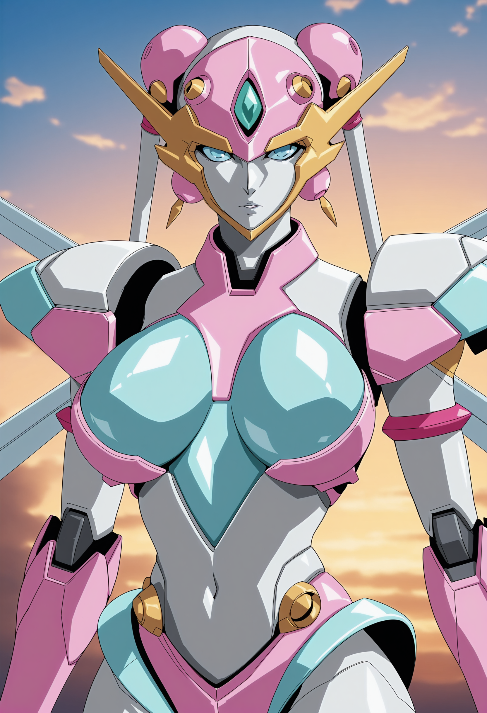 n0ilf, robot, mecha, 1girl, blue eyes, no humans, breasts, mechanical wings