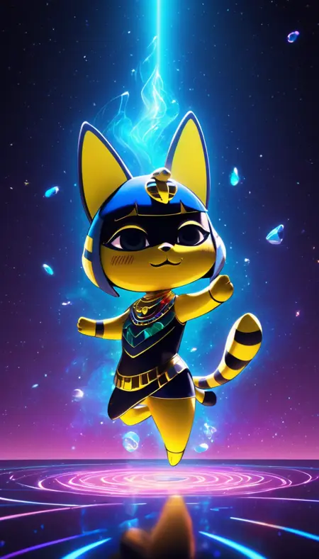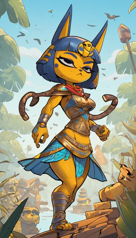 Use the trigger words "Ankha" and "Animal Crossing" to conjure this cat character. Weight of 1.0 works well can be adjusted to taste.