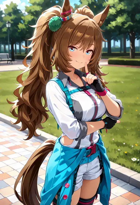 blast onepiece \(umamusume\), horse tail, twintails, messy hair,