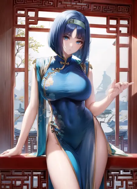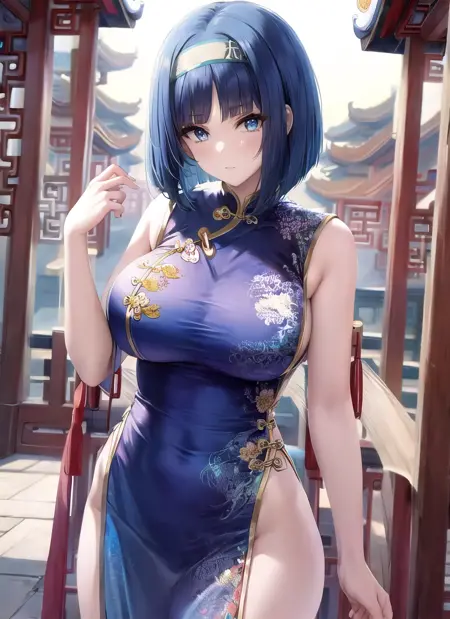blue hairband,parted bangs, blunt bangs,bob cut,