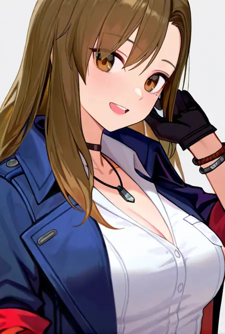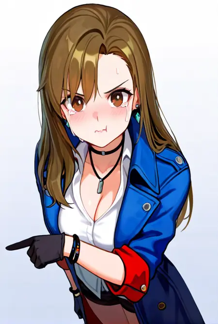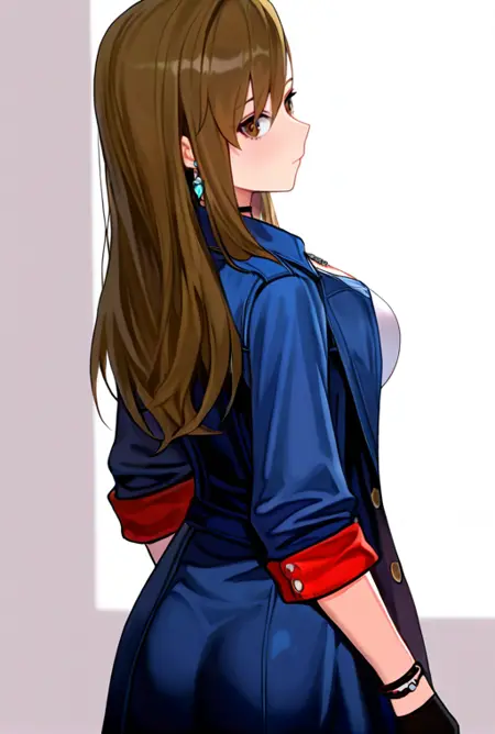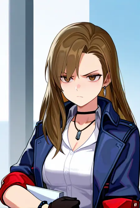 1girl, solo, kim_yujeong_(closers), long hair, brown hair, brown eyes, earrings,