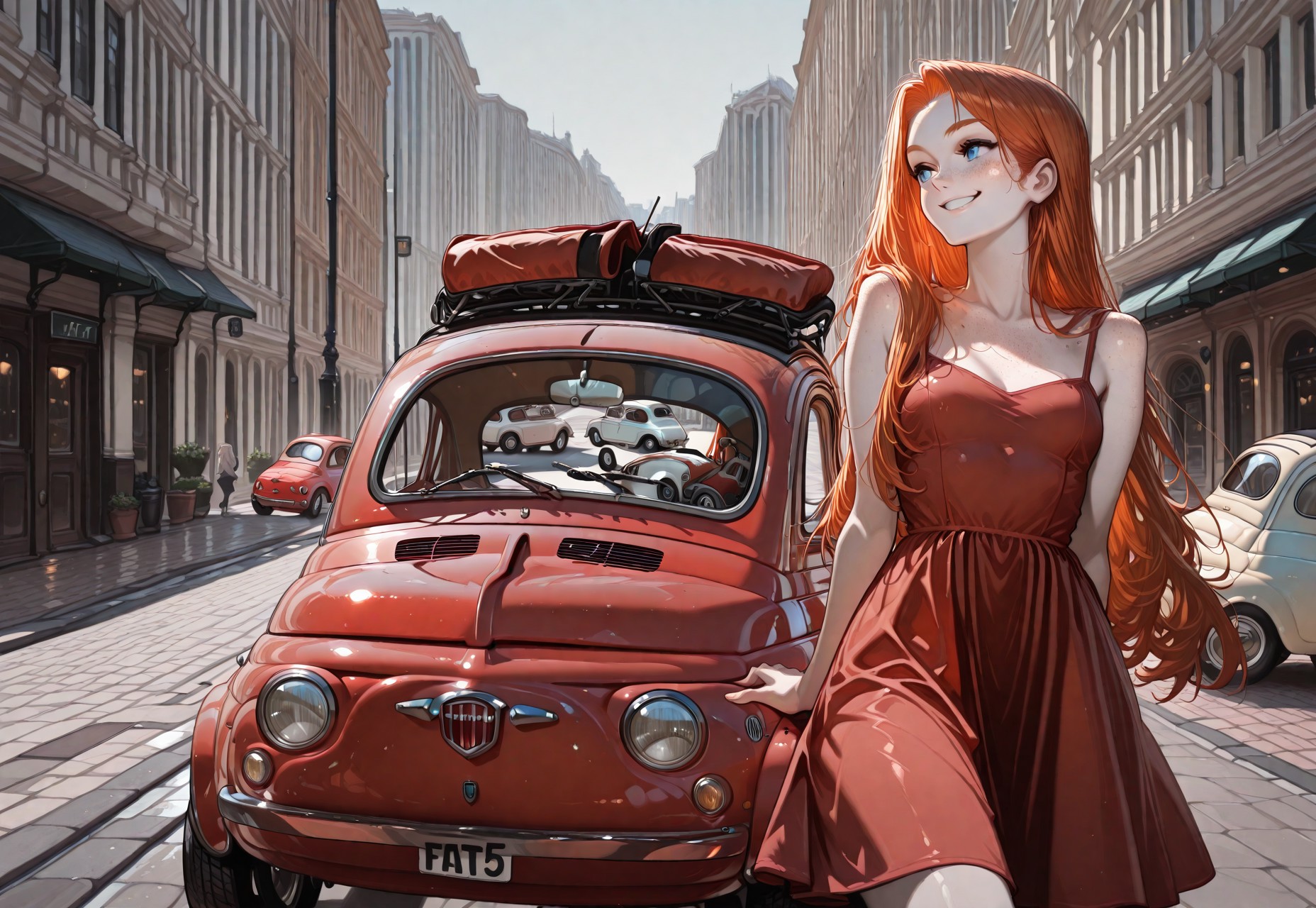 this is a total experiment :°D i've trained a bunch of pictures of a Fiat 500, it "" "kinda" "" works, generate a lot of crap and doesn't suit very well with illustration style, but something good comes out 😅