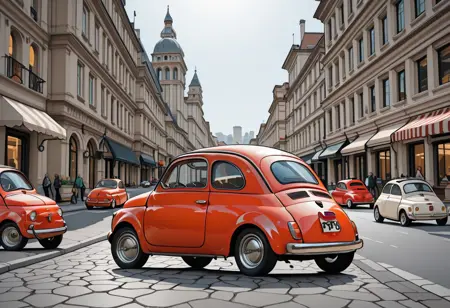 これは完全な実験です:°D フィアット500の画像をいくつか学習させましたが、"" ""やや"" ""うまく動作し、かなり多くの無駄な画像を生成し、イラストスタイルにはあまり合っていませんが、良い結果も出ます 😅