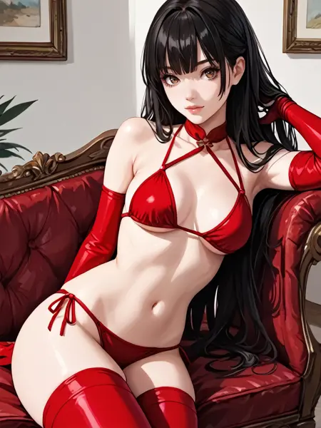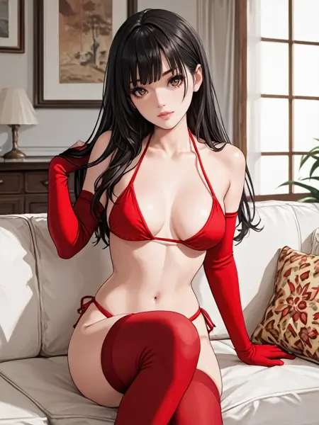 ,black hair,long hair,bangs,brown eyes,medium breasts,