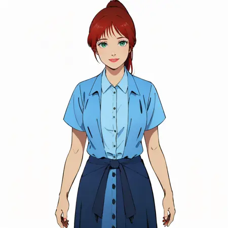 long hair,high ponytail,red hairbangs,green eyes,lipstick,
