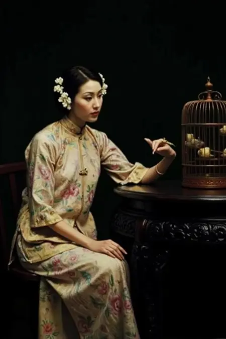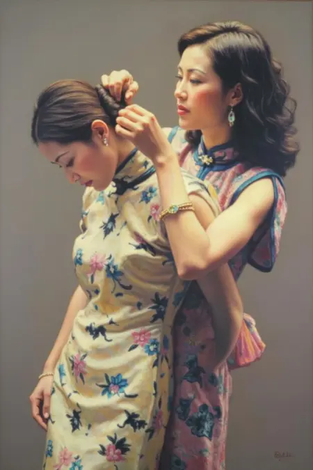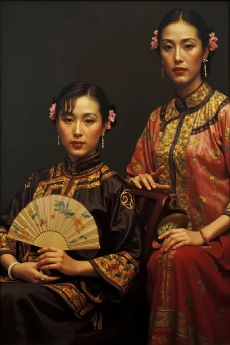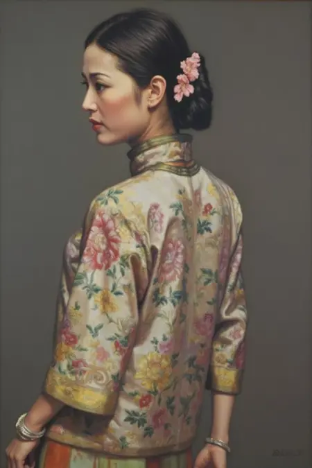 Shanghai Blues: Chinese Cheongsam Ladies Oil Painting Portrait Style (Chen Yifei)