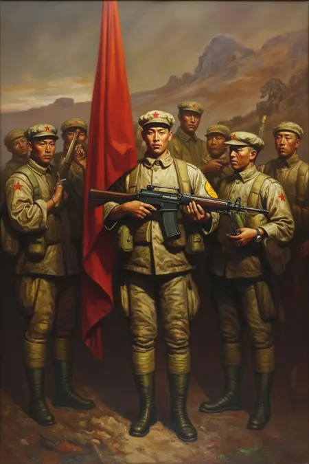 • 文化大革命の時代、陳のキャリアは国家主導の芸術に影響を受けましたが、彼は「赤いロマン主義」運動の先駆者となり、壮大な歴史的・宣伝画を制作しました。