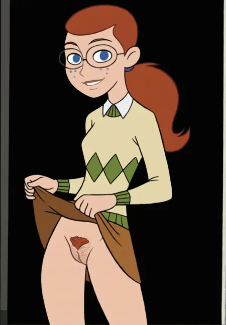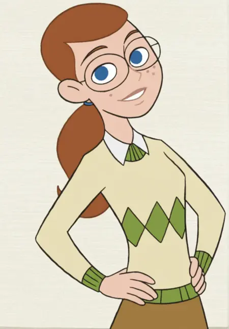 1girl, KPSweaterNerdGirl, flat colors, parody, ponytail, glasses, score_9,