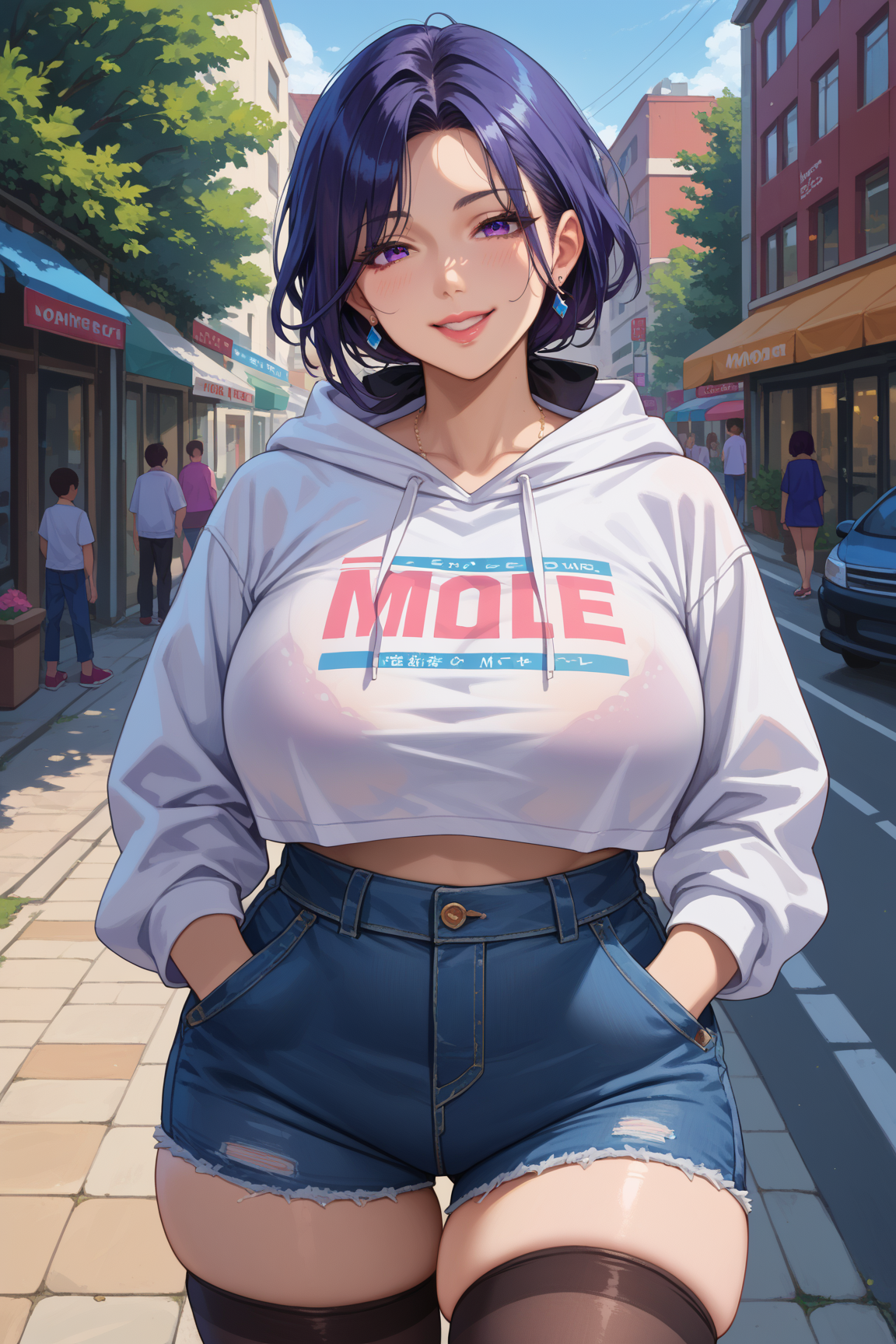 파란색 두건, 흰장갑, 검은 스타킹, 검은 연필 스커트, 귀걸이, 모자 깃털, 치마끈, 코르셋, 어깨장식