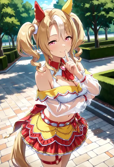 fusaichi pandora \(umamusme\), twin drills, horse tail, ear covers,
