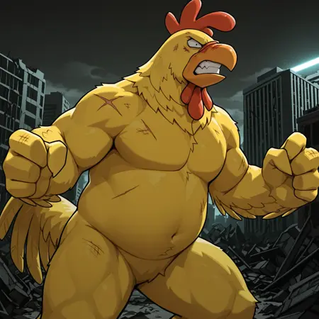 이것은 잦게 등장하는 애니메이션 적대자로, 엄청난 싸움을 벌이는 에니 대형 닭입니다! 그건 불가능하다고 했지만, 나는 그래도 해냈습니다!