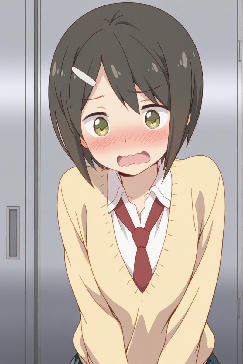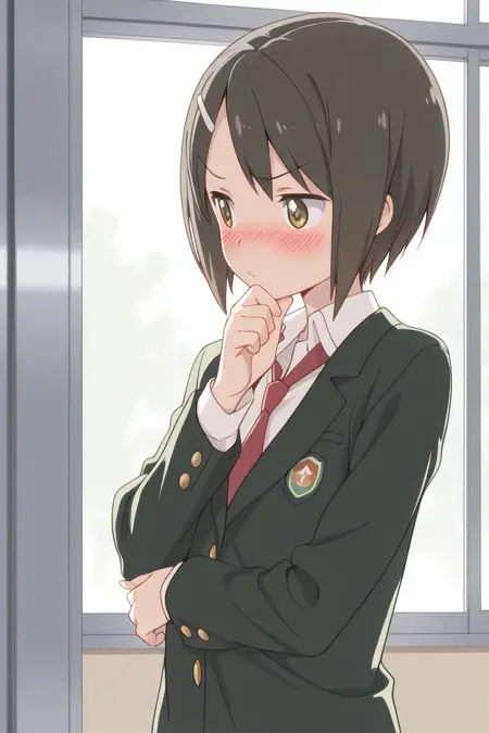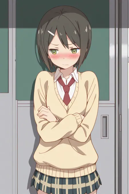 kaede, 1girl, hairclip, school uniform, necktie, blazer/sweater