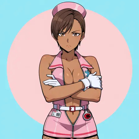 | 학습된 단어 | RRXXAnesthesia, 1girl, solo, mature female, brown eyes, short hair, brown hair, dark-skinned female, large breasts복사됨! pink nurse outfit, unzipped, open clothes, navel, pantyshot, nurse cap, belt, white gloves, fishnet thighhighs, knee pads, high heels복사됨! garrison cap, travel attendant, blue uniform, dress, white gloves, underboob, bow, black pantyhose복사됨! purple bikini, o-ring, o-ring bikini복사됨! |