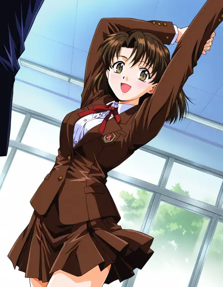 school uniform, brown blazer
