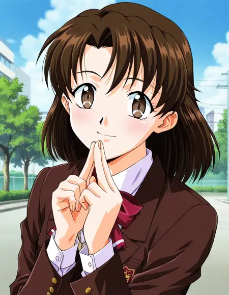 keshiki naoko, brown hair, brown eyes